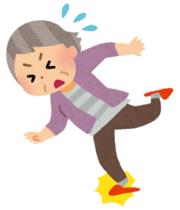 それだけならそれほど問題ないですが、足首が上にあげる筋力も低下するため歩行時に踵がつきにくくなり不安定になります。
